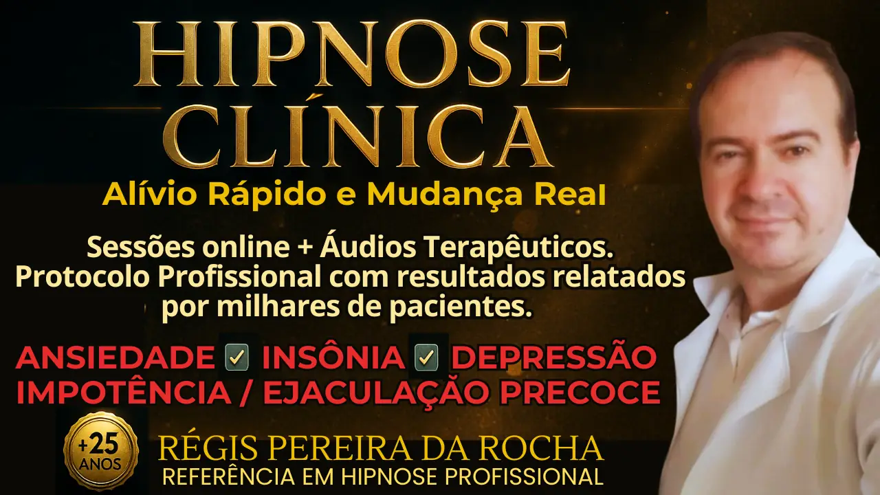 👨‍⚕️Régis Pereira da Rocha, hipnoterapeuta com +25 anos de experiência clínica, criou um método exclusivo de hipnose online e áudios terapêuticos.